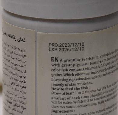 غذای به شکل گرانول ریز روی آبی دارای فرمول غذای خاص برای تمام ماهی های گوشتخوار گیاهخوار ماهیان این غذا حاوی رنگدانه های طبیعی می باشد که پس از 3 روز مصرف تعقیراتی در رنگ ماهی بروز میکند و پس از 2 هفته ماهی شما کاملا در خشیده و رنگ طبیعی خود را بدست می اورد این غذا از دانه های سویا گرفته شده است که حاوی میزان قابل توجهی ویتامین های a.d.c می باشد که باعث سلامت اندامها افزایش ظرفیت تولید و درمان سریع خراشیدگی های پوستی موثر میباشد
